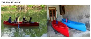 perahu kano indian untuk wisata dan olah raga mancing. bida memuat hingga 4 orang. cocok untuk disewakan di tempat tempat wisata air.